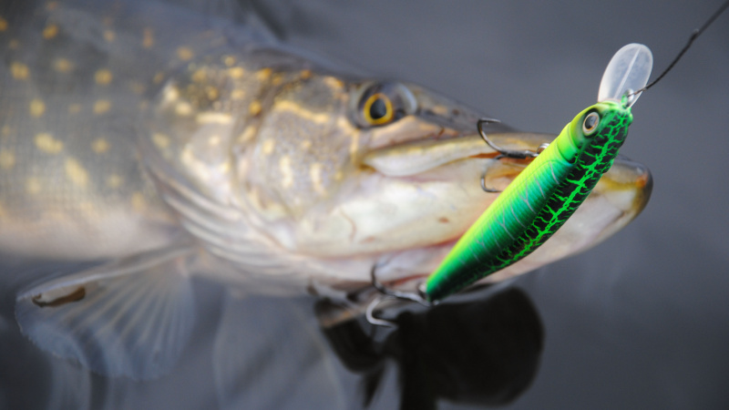 Через полчаса вялотекущих забросов четкая, уверенная поклевка. Честно сказать не ожидал. Подвожу к борту лодки первую воблерную щуку этого сезона.