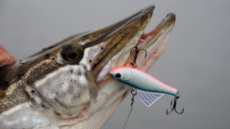 Наблюдение: все поклёвки щуки, в тот выезд, были на небольшого размера «тихоню» - раттлин Strike Pro Tornado Vibe 65. Все поклевки пятнистой были очень мягкими, едва ощутимыми. Иногда складывалось впечатление, будто приманка цепляется за подводную растительность. Каждый раз рыба засекалась за самый край пасти.